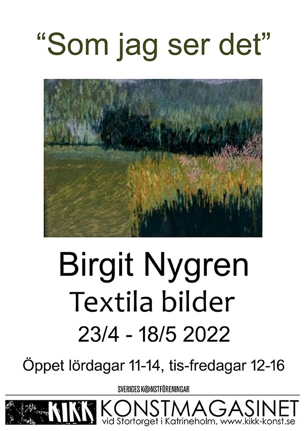 Utställningen ”Som jag ser det” av Birgit Nygren visas i Konstmagasinet under perioden 23/4 – 18/5 2022.