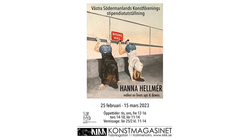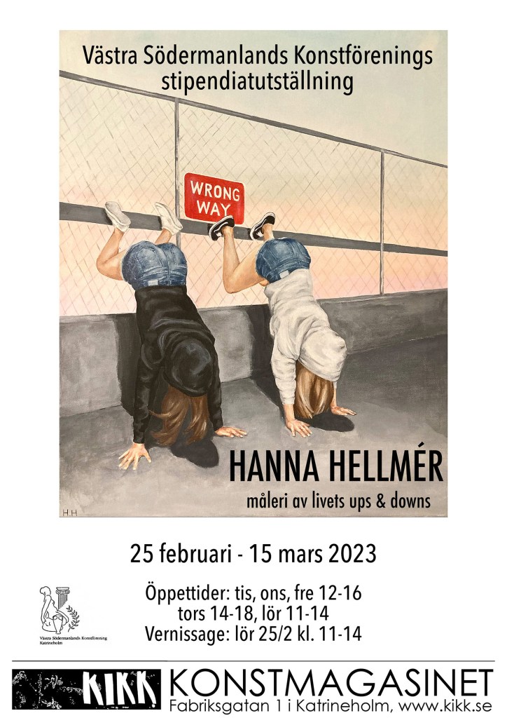 Västra Södermanlands Konstförenings stipendiatutställning äger rum i Konstmagasinet under perioden 25 februari – 15 mars 2023, årets stipendiat Hanna Hellmér visar måleri i olika tekniker kring livets ups & downs. Hanna är också medlem i KIKK.