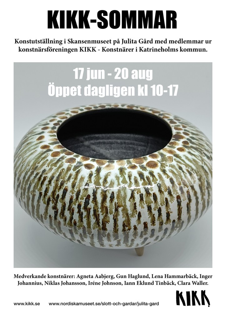 Varmt välkomna att besöka konstutställningen KIKK-sommar under perioden 17/6 – 20/8 på Julita Gård. Vi vill önska er alla en härlig sommar!