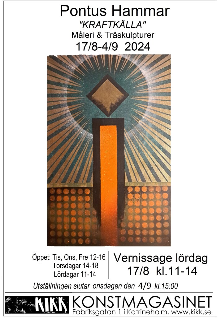 Konstmagasinet startar upp hösten med utställning ”Kraftkälla” där Pontus Hammar visar upp både måleri och träskulpturer. Utställningen pågår mellan 17 augusti och 4 september 2024.