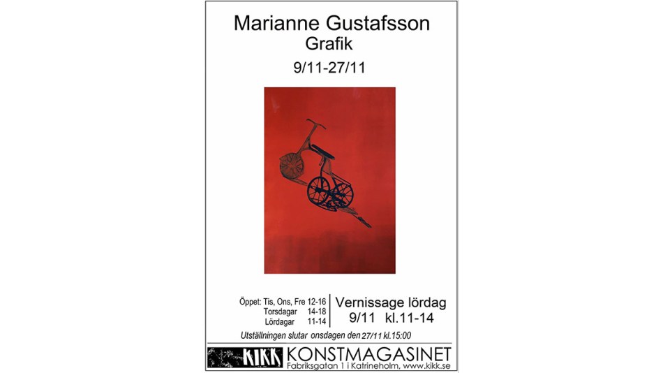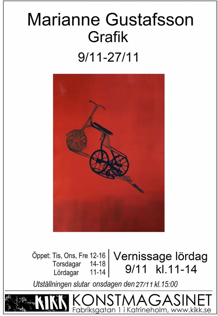 Marianne Gustafsson ställer ut grafik i Konstmagasinet från 9 november fram till och med 27 november. Varmt välkomna!