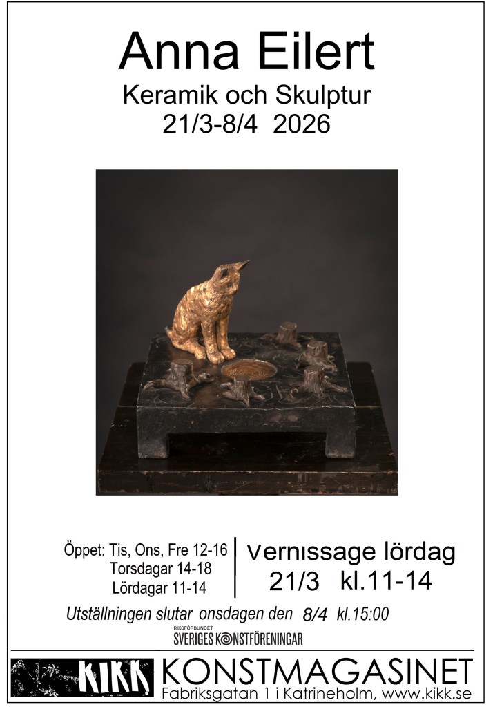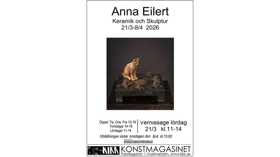 Anna Eilert ställer ut keramik och skulptur i Konstmagasinet, utställningen pågår under perioden 21 mars – 8 april 2026.