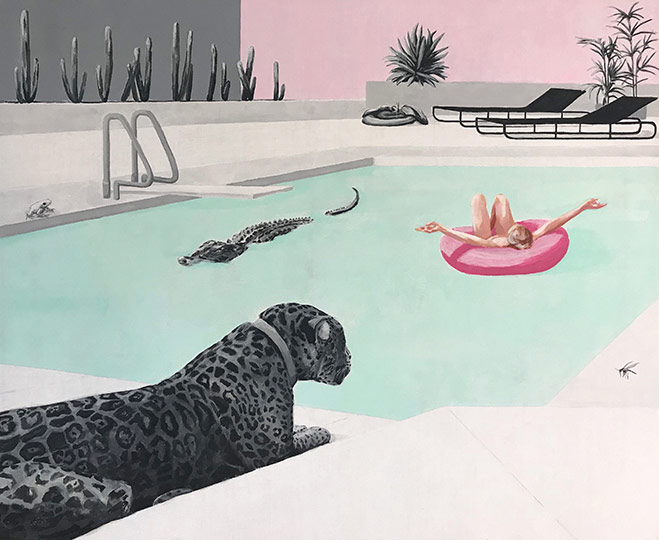 Teknikerna jag använder mig av är främst akryl och olja, ibland även akvarell.